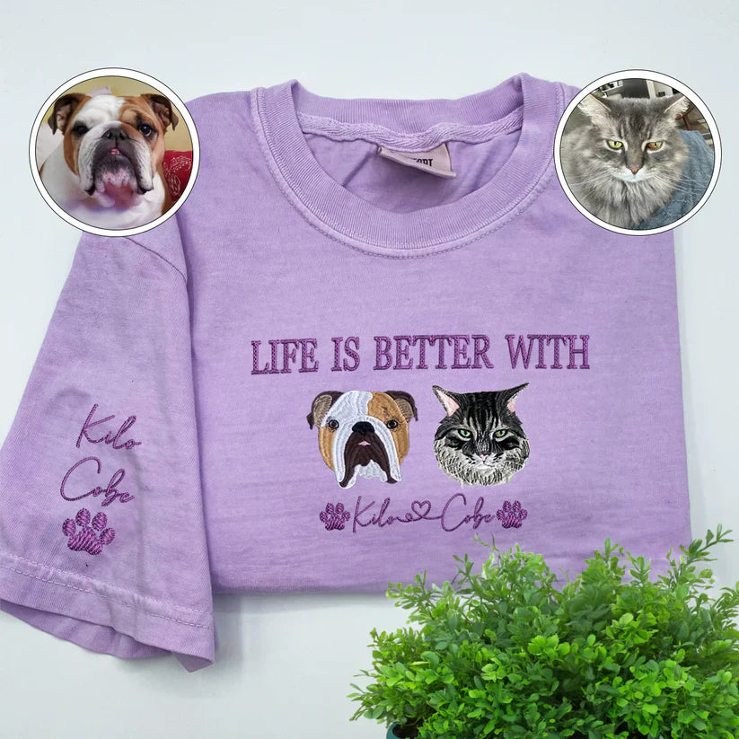 Custom Embroidered Two Pets Portrait Sweatshirt