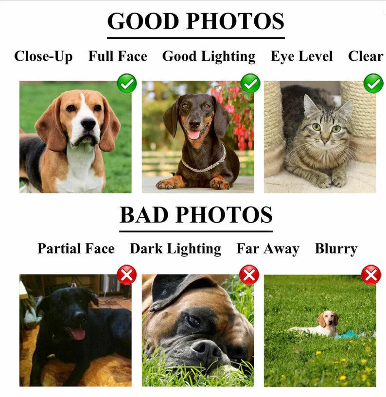 - Personalized Design: Custom embroidered portrait of your pet from a photo you provide.