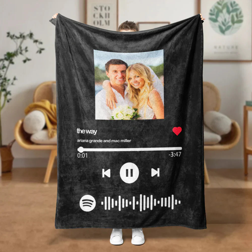 Perfect for preserving special moments, this blanket combines your favorite song and a cherished photo into one meaningful keepsake. It's more than just a blanket—it's a warm embrace of memories, making every use a reminder of the moments that matter most.