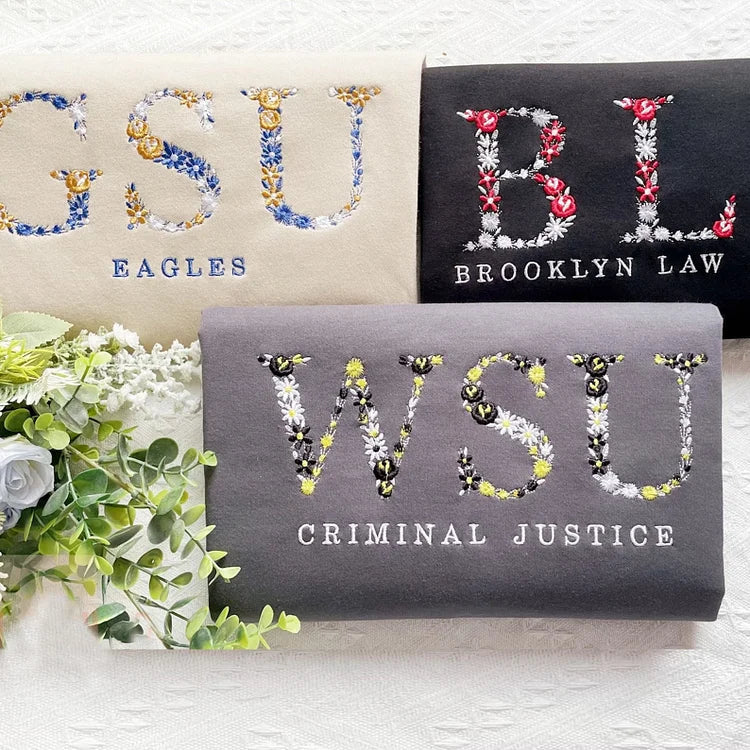 Inspired by the beauty of nature and the timeless appeal of fashion, our embroidered floral monogram college sweatshirt is designed to blend style with personalization. Each sweatshirt is crafted with care and attention to detail, ensuring the piece you receive is as unique as you are.
